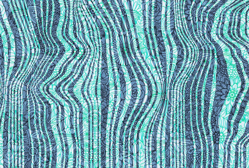 Aqua Blue and Gray Wavy Pattern Mural Art