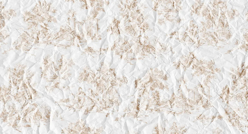 Distressed Toile de Jouy Mural, French Country Vintage Wall Art